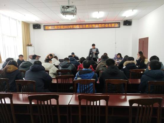 会议对寒假期间的学生安全教育问题、寒假社会实践、寒假作业等方面进行了布置和强调。会议以人生安全、财产安全、交通安全和寒假务工安全为主题,结合校园发生的典型案例,告诫同学们要注意假期安全,并告知学生们到家后第一时间通过电话、QQ等渠道及时向班主任、辅导员报平安。