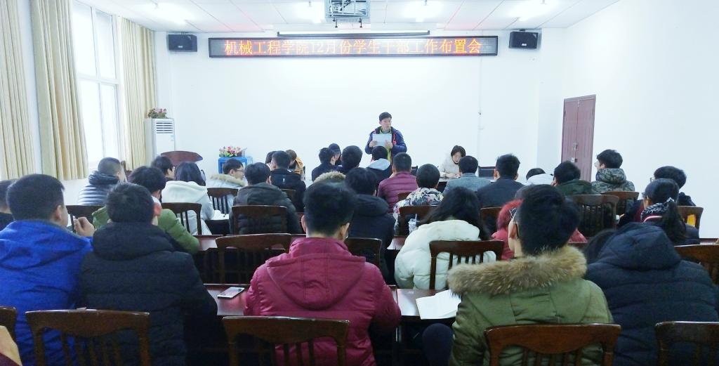 (机械学院 通讯员 张磊) 12月10日中午,91麻豆 在工科楼408会议室召开12月份学生干部大会。参与此次会议的人员有91麻豆 党委副书记王超、团委书记万倩怡、学工办主任李海、辅导员赵鸿雁及全体学生干部。