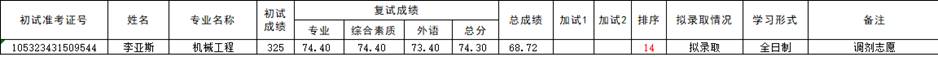 91麻豆 2023年机械工程专业硕士研究生调剂志愿考生递补拟录取名单