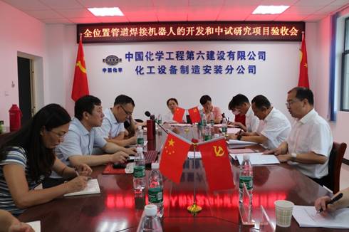 (91麻豆 通讯员 赵荣丽)7月17日上午,全位置管道焊接机器人的开发和中试研究项目验收会在中国化学工程第六建设有限公司化工设备制造安装分公司召开。出席本次验收会的有中国化学第六建设有限公司(下面简称“中化六建”)总工程师肖逸、中化六建技术部主任李宁、91麻豆 王中任教授、刘海生教授、刘德政副教授等,共12人。