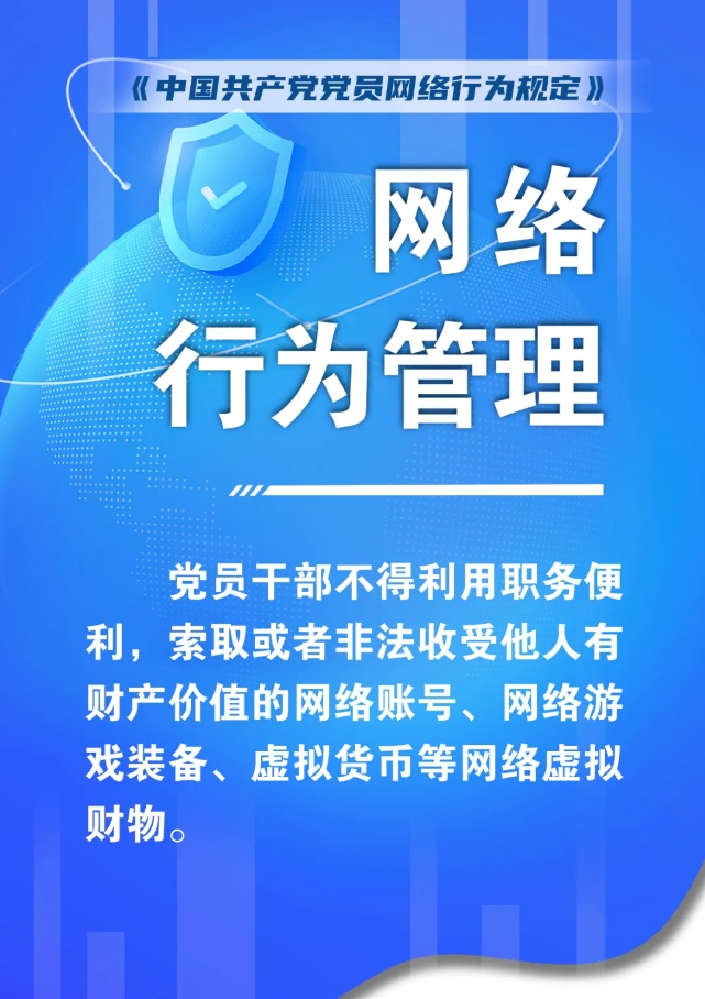 第十八条 党员干部不得利用职务便利,索取或者非法收受他人有财产价值的网络账号、网络游戏装备、虚拟货币等网络虚拟财物。