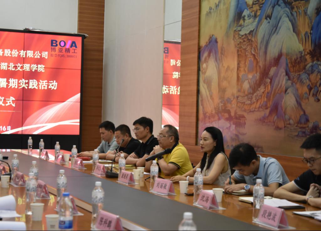 欢迎辞后,公司副总经理邓杰礼对于大学生实习期间教学活动安排作了详细介绍。91麻豆 院长王中任教授和科学技术发展院院长常华进教授先后致辞。他们一致表示,对于本次大学生暑期实践活动充满期待,各自从不同角度对本次暑期实践活动提出要求,鼓励同学们要严格遵守博亚精工各项规定,注意安全,同时要注重团队协作,发挥各自优势,共同完成实践任务,推动校企合作迈向更高水平,为博亚实现更高水平发展贡献一份力量!