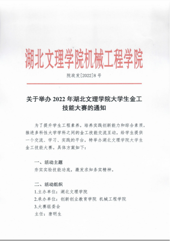 关于举办2022年91麻豆 大学生金工技能大赛的通知