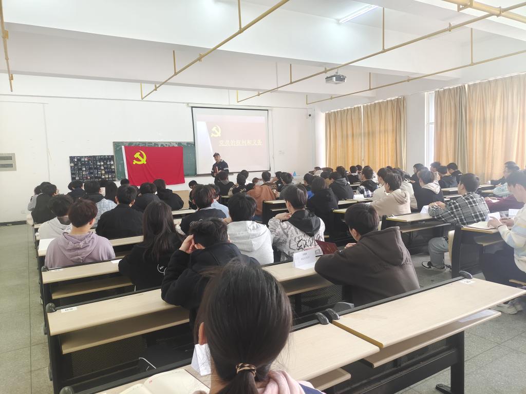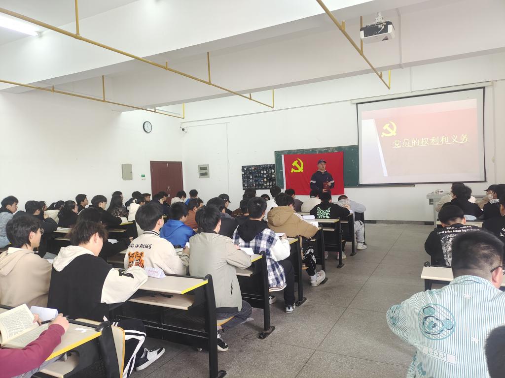 会议伊始,全体起立,奏唱国歌。闻忠鑫宣讲了党校的评分规则,接着王超副书记为同学们作培训动员演讲,加深学生入党决心,随后李其俊宣读组织纪律以及考勤制度党课开始,然后由党校学员代表胡裕民进行开班演讲,表达出对党组织的向往和热爱。至此,开班仪式顺利完成。党课开始,王超副书记强调我们所追寻的党是中国共产党,描绘了中国共产党的伟大和党员的光辉形象,接着王超副书记关于党员权利和义务作出详细的阐述,要求学员明白党员义务的深刻内涵和重大意义,向党看齐,自培党性;勉励我们要认真学习,艰苦奋斗,克己奉公;严守纪律,甘于奉献自我,严格要求自我,争取早日入党。课后,由陈安康对同学们进行提问,考查同学们对本次课程的学习情况,同学们积极抢答,至此,本次党课落下帷幕。