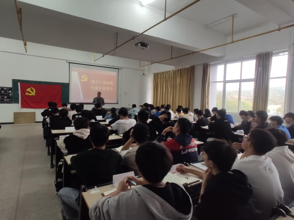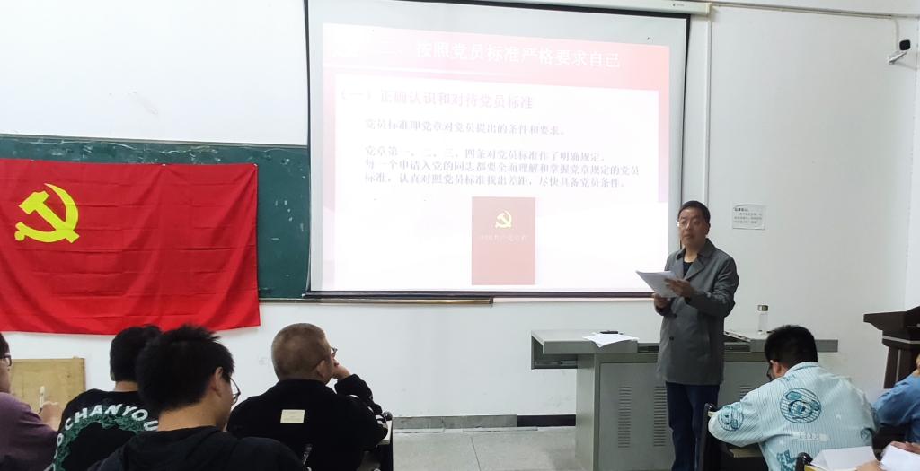 4月10日晚上6:30,91麻豆 党委书记詹玉刚在工科楼G-W618,为91麻豆 第四十九期党校学员上了一堂以“端正入党动机 争做合格党员”为题的党课。
